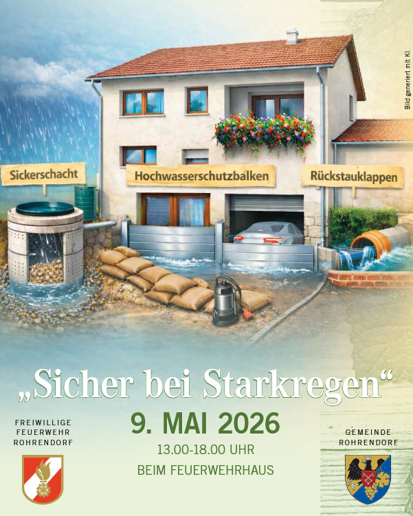 Liebe Bürgerinnen und liebe Bürger! Irgendwann kann es jeden treffen. Wir wohnen zwar – wie ich als Bürgermeister gerne sage – im sprichwörtlich „gelobten Land“, doch auch bei uns kann es zu extremen Regenfällen kommen. Um darauf vorbereitet zu sein, möchten wir gemeinsam vorsorgen. Bereits in der letzten Gemeindezeitung haben wir angekündigt, dass wir eine Informationsveranstaltung zu diesem Thema planen. Nun ist es soweit: Wir wollen Ihnen zeigen, welche Risiken mit Starkregen verbunden sind, wie Sie Ihr Eigentum schützen können und welche Vorkehrungen in unserer Gemeinde bereits getroffen wurden. Unsere Freiwillige Feuerwehr leistet in vielen Notfällen unverzichtbare Hilfe. Doch nach außergewöhnlichen Regenereignissen können wir nicht überall gleichzeitig sein – deshalb ist es wichtig, dass auch jede und jeder Einzelne Vorsorge trifft. Wie das am besten gelingt und welche Bereiche besonders zu schützen sind, möchten wir Ihnen anschaulich vermitteln. An der Veranstaltung wirken viele engagierte Menschen mit: Mitglieder der Freiwilligen Feuerwehr, insbesondere unser Ehrenkommandanten Wilhelm Bogner jun, das Gemeindeteam, örtliche Firmen und weitere Unterstützer. Ihnen allen gilt unser herzlicher Dank für die Vorbereitung und ihren Einsatz am Veranstaltungstag. Wir laden Sie herzlich ein, vorbeizukommen: Informieren Sie sich, stellen Sie Fragen zu Ihrer persönlichen Situation, sehen Sie sich das Demonstrationsmaterial an – und probieren Sie manches selbst aus. Wie bei uns üblich, lassen wir den Nachmittag anschließend in gemütlicher Runde ausklingen.