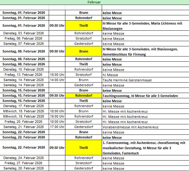 Messen und Veranstaltungen Pfarrkirche Rohrendorf