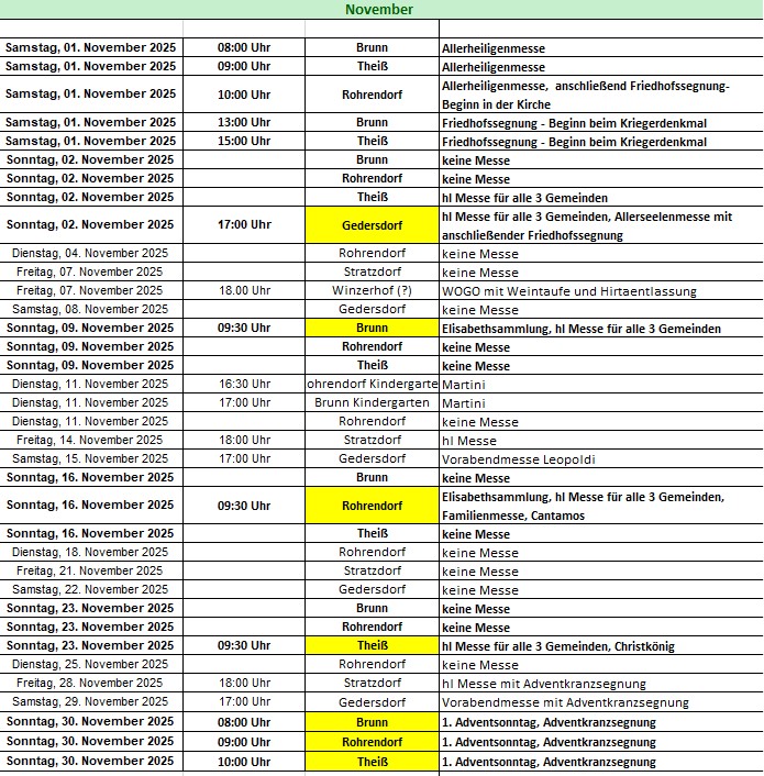 Messen und Veranstaltungen Pfarrkirche Rohrendorf