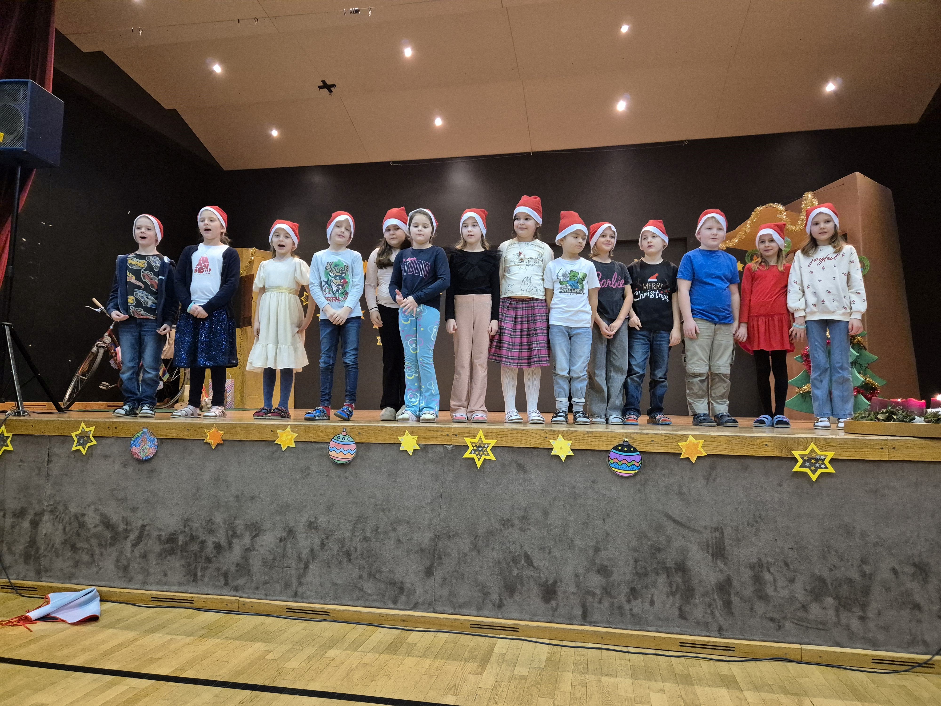 Im Zuge der Senioren-Weihnachtsfeier am 16. Dezember durften die Schülerinnen und Schüler der ersten und zweiten Klasse die Feier feierlich eröffnen. Mit stimmungsvollen Liedern, einem Gedicht sowie einem schwungvollen Tanz sorgten die Kinder für vorweihnachtliche Stimmung und bereiteten den Seniorinnen und Senioren große Freude. Die jungen Darstellerinnen und Darsteller begeisterten das Publikum mit ihrem engagierten und gelungenen Auftritt.